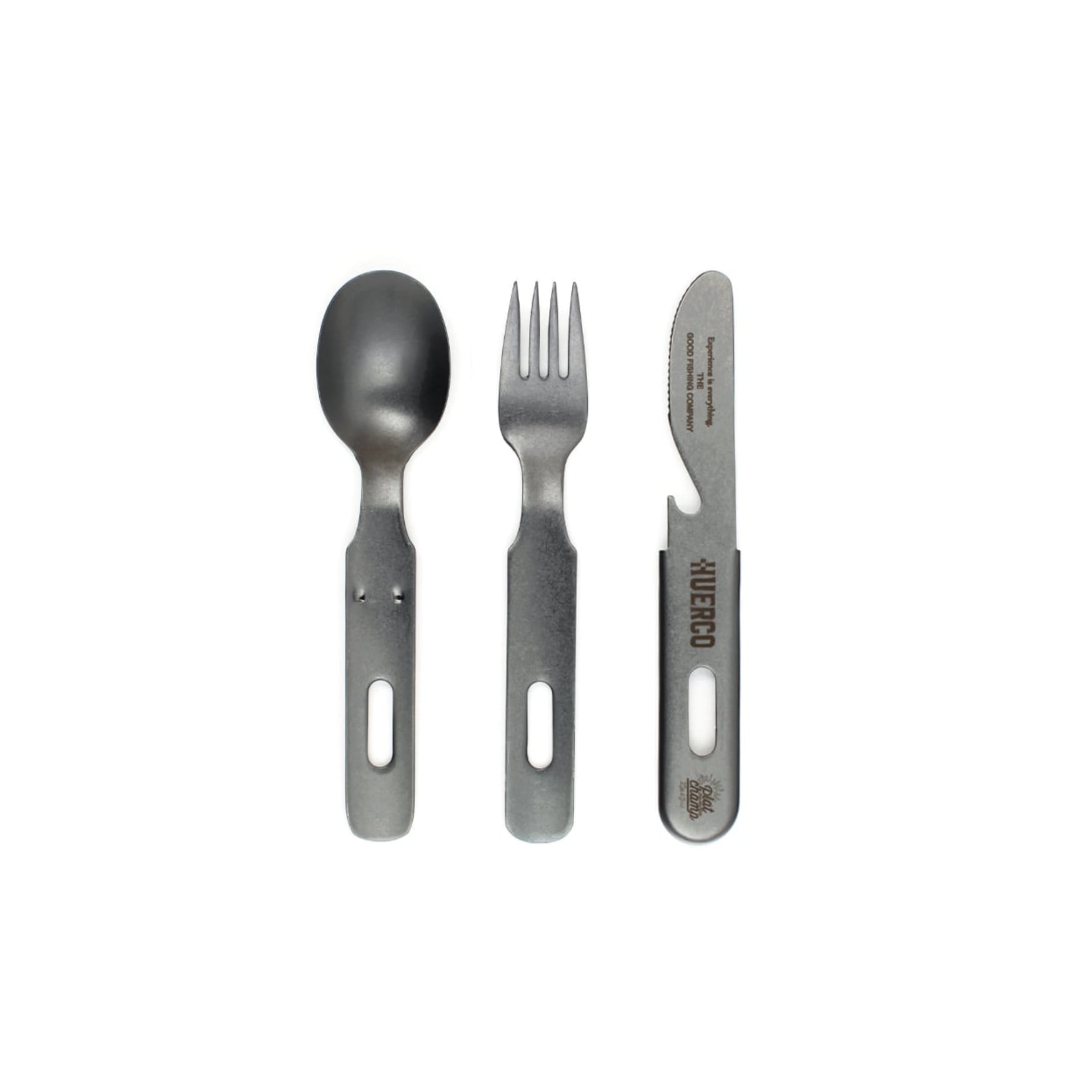 This cutlery set, created in collaboration with outdoor kitchen brand Platchamp, features an antique-like texture thanks to the aged stainless steel material. The knife (with bottle opener), fork, and spoon all fit together in one, making it highly portable. Enjoy the unique black color achieved through black oxide. *Orders from overseas will be sent via EMS.